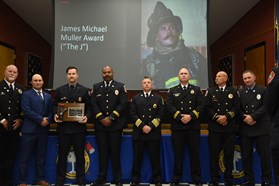 It was evident from the moment you met J that he was 100 percent into the job and he loved it with all his heart. His impact on the FOA is indescribable. The James Michael Muller “The J” Award for Excellence was established during the FOA 23-02 program and presented to Summerville Fire-Rescue Chief of Training Chris Tennyson. This award is given to the student of the FOA for being the most proficient and professional candidate of the class. The award recipient is selected by the instructor cadre and given to the student who embodies J’s spirit and shows exceptional skill, consistent attitude, and overall proficiency throughout the week.