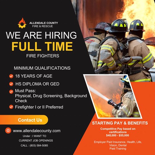 Allendale County Fire & Rescue is hiring and searching full-time firefighters.
