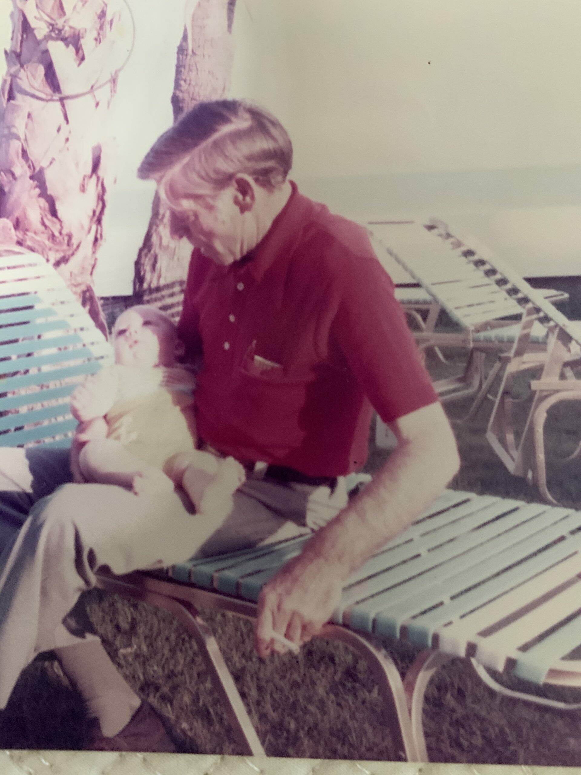 First State Fire Marshal, Jesse Johnson, holding our current State Fire Marshal, Jonathan Jones at age 6 mos. during annual Conference in Myrtle Beach (1977).