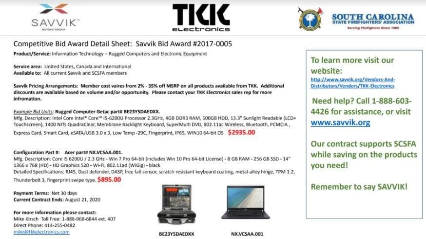 Electronics are a very big spend for services and getting the right equipment is very important, Savvik Buying Group has an excellent program with TKK on rugged laptops and tablets already bid and awarded on our RFB #2017-05 and we have a vast selection to fit your needs. TKK can also help with any custom units that you may require. We have done all the legwork for you, now you can save time and money! To learn more visit our website: http://www.savvik.org/Vendors-And-Distributors/ Vendors/TKK-Electronics If you have any questions, please contact Mickey Schulte, Executive Director Savvik Buying Group713.504.7737